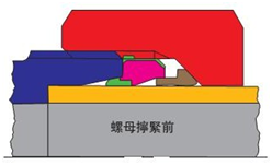 卡套在结构上为卡套的预装提供了简便,可靠的检查判别标示。如图所示,在卡套预装配之前卡套与定位环之间有一端空隙。当卡套经过正确预装后切入钢管,此段间隙即可消   除(小于 0.2mm),此间隙的存在与否就是判断卡套预装正确与否的标准,非常简便安全可靠。