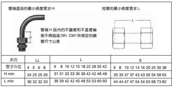 管口去毛刺,平整的精密无缝钢管(符合 DIN2391 公差要求的无缝钢管),标准合格的 24° 锥卡套接头,