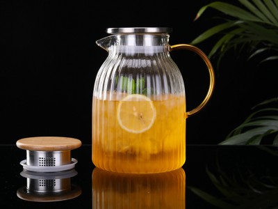【商品名称】:玻匠人品牌玻璃茶具冷水壶 凉水壶宽纹 工厂批发定做