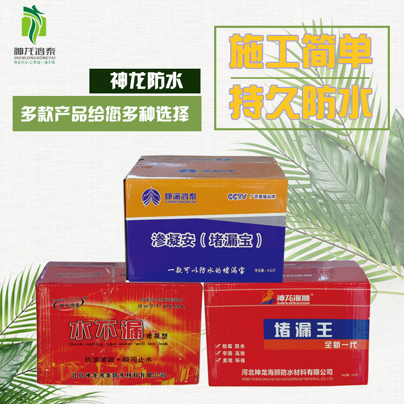 堵漏施工:漏水口施工必须用速凝水不漏。用凿子式,钻将漏水口打出有一定深度里大外小的口子(一般为3-4cm)堵漏料,按粉:水=1:0.25,按口子形状捏成略小于口子的料团,放置一会儿(手捏有硬感为宜)后塞进漏水口,并用木棒挤实即可瞬间止漏。